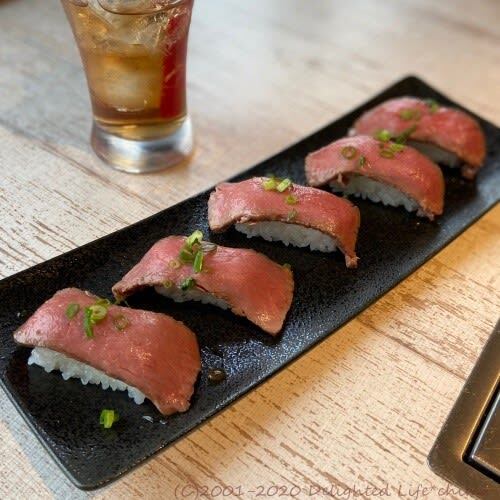 そうそう、結局ふたりで特選和牛握り5貫(2145円税込)とBBQ焼肉セット(1100円税込)、ウーロン茶(330円税込×2)注文して支払ったのが1100円のみ。