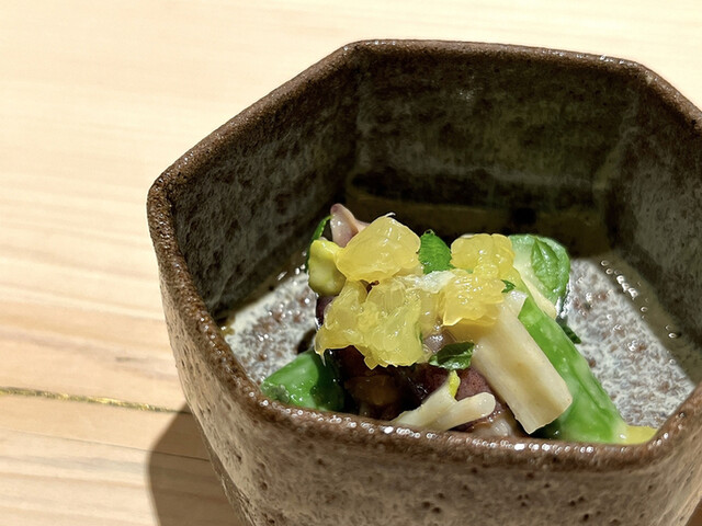 ◆ ホタテ 野付の北海シマエビ ソラ豆 胡瓜 葛切り