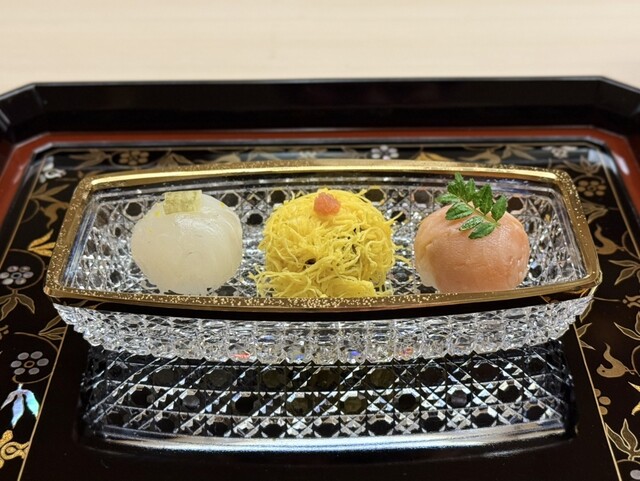 蟹焼売を初めていただきましたが大変おいしく、手毬鮨も良かったです!極細錦糸卵が特に印象的でした