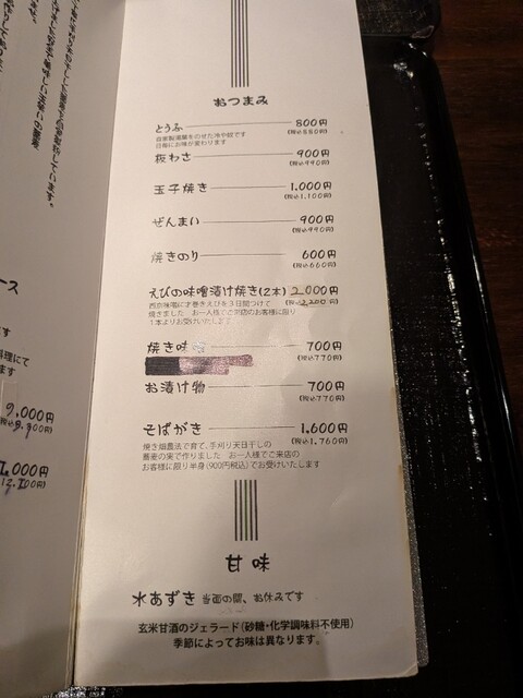 えびの味噌漬け焼きは頭からいただける香ばしい味わいでとても美味しく急いで日本酒をオーダー
