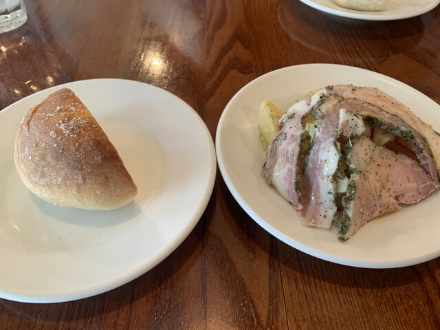 隠れ家的なこのお店❗️毎回1,800円のランチにしますが前菜が最高。今回はジャガイモと豚肉のマリネ、この組み合わせも絶品。カニとトトマトのクリームパスタを選択、これも付け合わせのパスタでソースまで綺麗に堪能。量もたっぷりで男性でも満足できるくらいです。