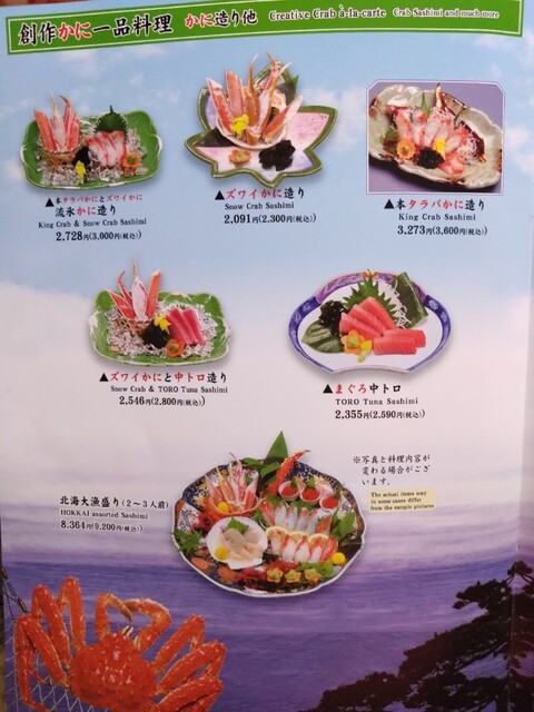 お造りは、カニが透き通ってて見ているだけでうっとり。弾力があり、身がしっかりしています。