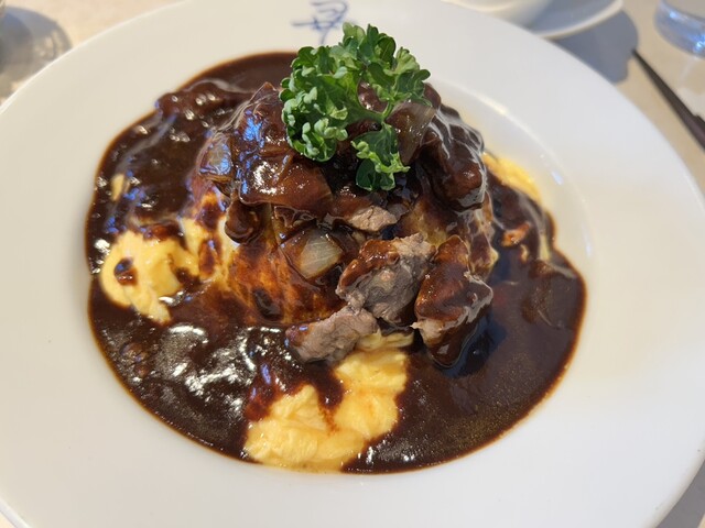 デミグラスソースの酸味とコクのある匂いがとっっても良い匂い!!たっぷりかかったビーフオムハヤシは大満足です。