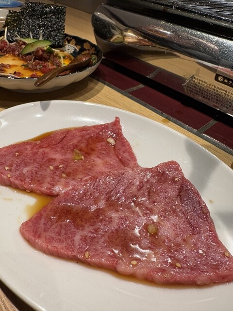 内容:ナムル/キムチ盛り、エビ刺し、ユッケ、タン、ライス、カルビ、ロース、厚切りハラミ、ザブトン、ツラミ(塩)、ミノ(塩)、ホルモン、ウルテ、冷麺、シャーベット