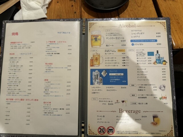 レアの焼き鳥、唐揚げ、しいたけ、は必須ですね!