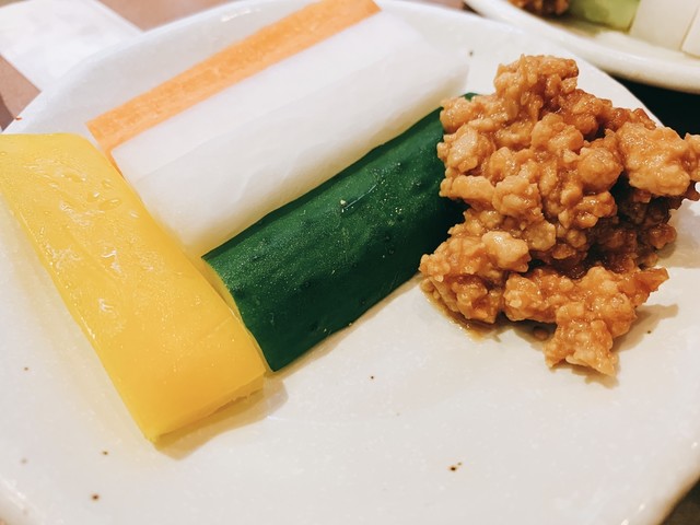 野菜スティックの肉味噌がおいしすぎて持ち帰りしたいくらいハマっております。