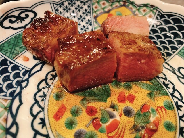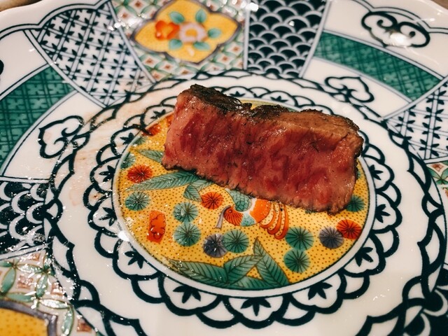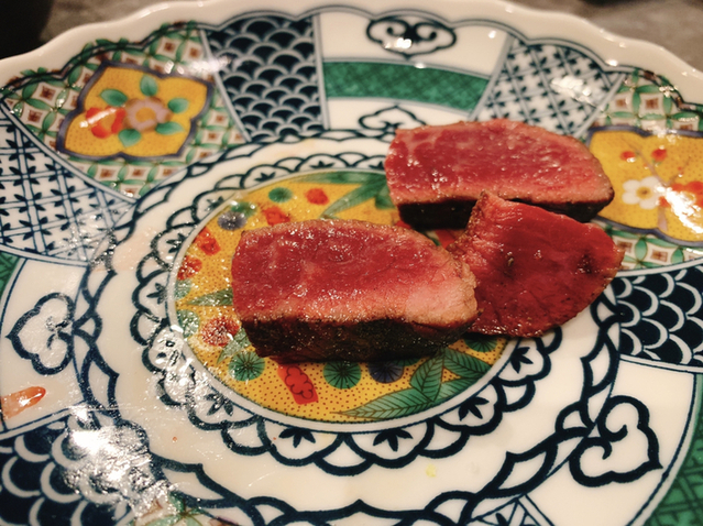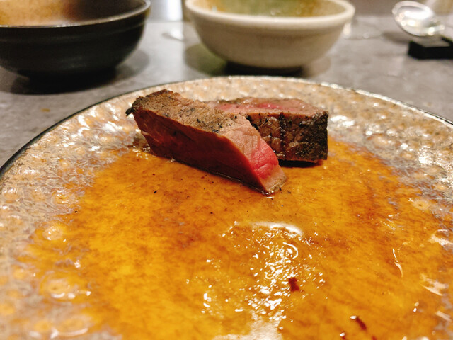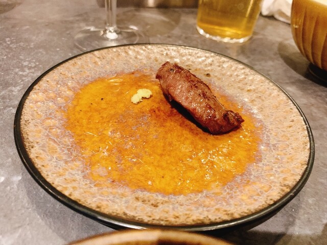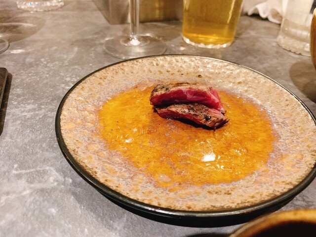 コースは前菜から始まり最初は焼かない肉料理、途中から目の前で肉を手切りでカット焼いて提供してくれます。