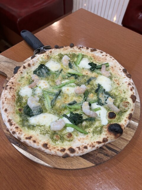 ジェノベーゼがベースになっており小松菜とエビがトッピング。