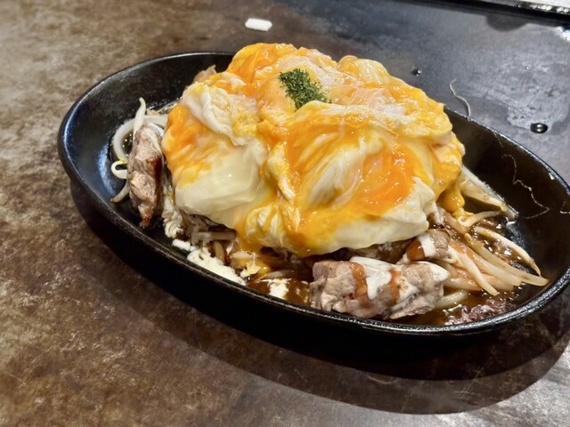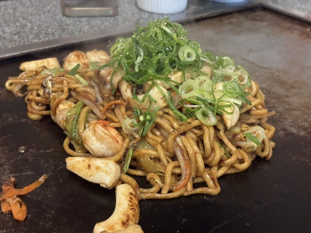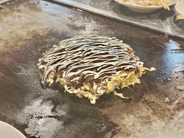 お好み焼きも焼きそばも食べたいけど…まだ食べた事ないメニューも食べたいしなあと悩み、とりま、とん平焼きとそば焼から。(といいつつこのあとめちゃくちゃ飲酒に移行した)