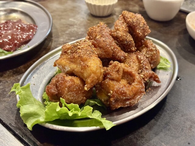 この日は牛たたきの日。200g +αでオーダー。何度もいただいてますが、たまらんのよねこれ。からの4月限定(好評につき5月も販売)のスパイシー唐揚げ。サクサク食感は保ちつつタレがしっかり染み込んでいて噛めば噛むほどジューシーかつスパイシーな味の広がりがありこちらもうんまい!