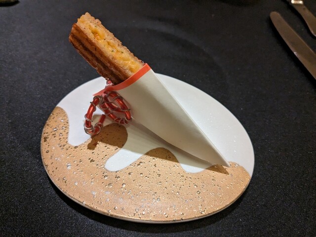 見た目に目を取られがちですがコンソメと蟹とキャビアが調和しておりとっても美味しかったです。
