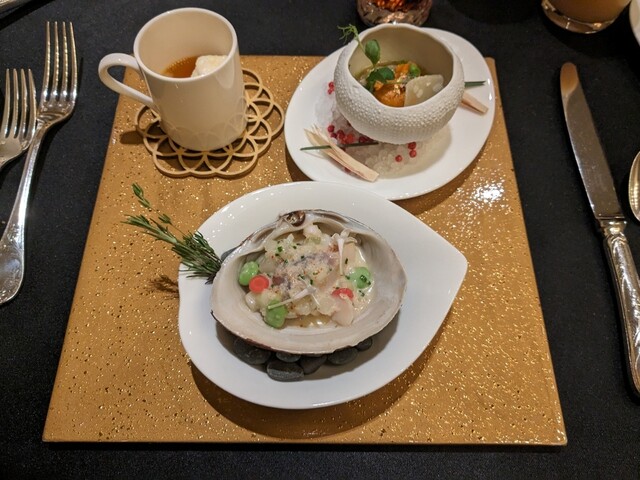 見た目に目を取られがちですがコンソメと蟹とキャビアが調和しておりとっても美味しかったです。