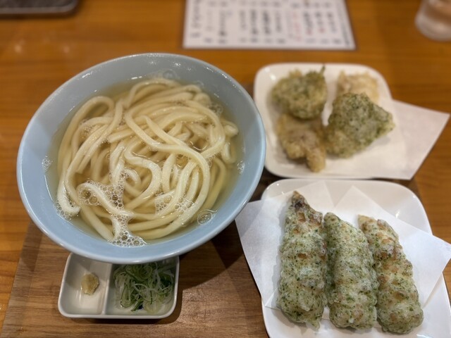 大好きなうどん店。もう何度お邪魔したか分かりませんが、本日は休日出勤前のランチで再訪しました。実は先日インスタノーチェックで訪れイベント参加休店の憂き目に(笑)本日はチェックしてお邪魔しました。本日の小麦はナンブキラリとのこと。独特のノドごしと香りが高いレベルで調和していたように思いました。添えの生姜がお出汁の旨みをさらに引き立てます。トッピングはいつもかしわ天とちくわ天ですが、共に極めて高いレベルです。かしわのモモはプレーン、ムネは磯辺にしておられます。当店のうどん&お出汁には食感の良いムネと磯辺の香りがピッタリとは思いつつも、モモはモモで絶品なのです。ムネ→うどん→ダシ→モモ→ちくわ→うどん→ダシのコンビネーションで気絶しそうになりました。ホントうまい。。価格は徐々にインフレの影響を受けていますが、未来に残るべき庶民派のお店として頑張って欲しいです。ごちそうさまでした。