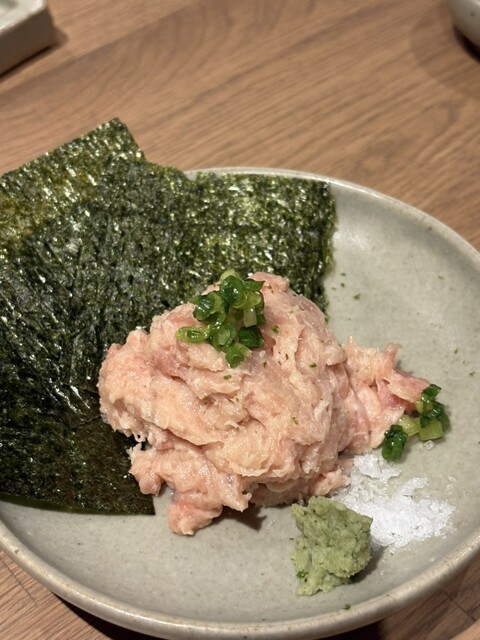 食べログ検索で見つけて会社同僚とお試し訪問しました。天五商店街の南側にある細い路地にあります。店内はこじんまりとしていて1階はカウンターのみ、2階にテーブル席2-3卓の構成で騒がしくなくGOODです。主張しすぎないながらも個性ある付け出しを出してくださるので、本メニューにも期待が持てましたが、串、一品ともに丁寧に仕事されており好感です。若者が暴飲暴食するには少しお高めの価格設定の気もしますが、ミドルエイジで静かにしっぽりいきたい方々、パートナーを裏路地のお店に連れて行ってちょっと良い格好したいけど裏路地初心者で不安な方々には安心して利用できますので、おすすめかもしれません。ごちそうさまでした。