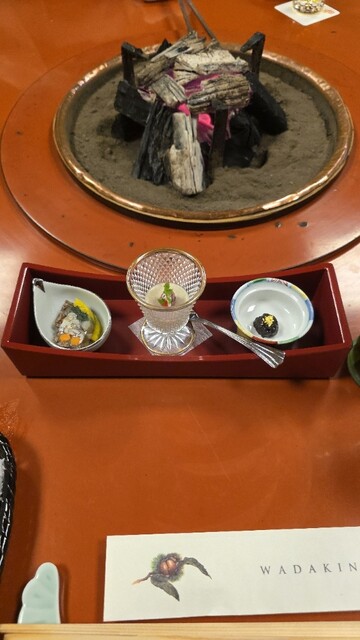 コースには和田金三種盛、はかり炙り焼、和田金肉すましがついていて、寿き焼きの期待感がめちゃ上がった!どれも美味いのよこれが♪