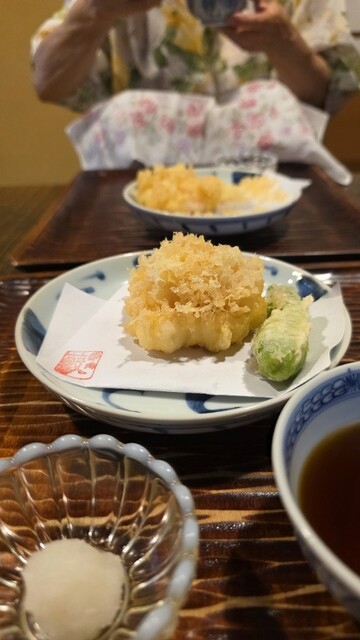 海老のかき揚げなわけだが、小さな海老が7~8匹ほどで、背わたは全部処理してあり、とにかくサックサクでブリンブリンで、天つゆとの相性最高♪