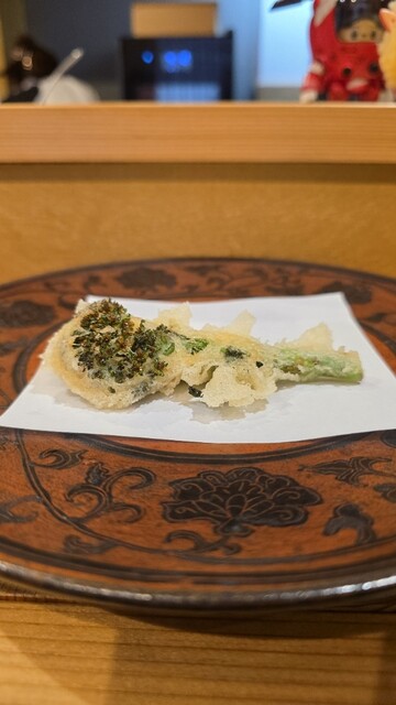 途中、赤茄子があるのだが、これはビックリ、こんなサクサクでジューシーな茄子の天ぷらは食べたことがない美味さ♪