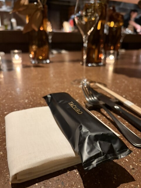 白金台の閑静な住宅街の地下に、ひっそりと佇む「TACUBO 白金台」。代官山の名店、TACUBOの姉妹店として注目を集めるこちらのお店は、看板も控えめな正真正銘の隠れ家です。階段を降りて一歩足を踏み入れると、そこにはまるで洞窟のような神秘的な空間が広がっていました。中央に鎮座する大きな円卓がとにかくスタイリッシュで、薪がパチパチとはぜる音と芳醇な香りに包まれる時間は、まさに非日常そのものです。