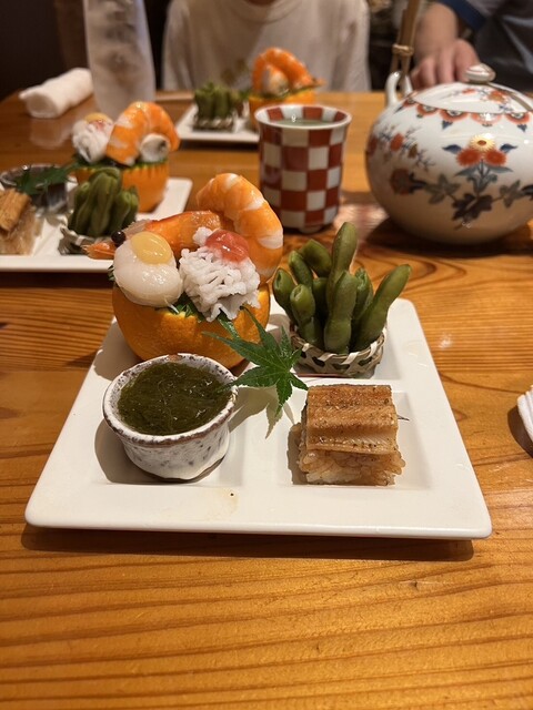 前菜 穴子の握り 枝豆 松茸 ハモ