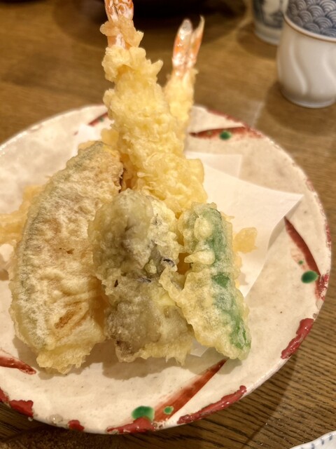温かい、美味しいそば茶をいただきながら、鴨にしようか、小海老天にしようか、湯葉にしようかと考えましたが(^^)