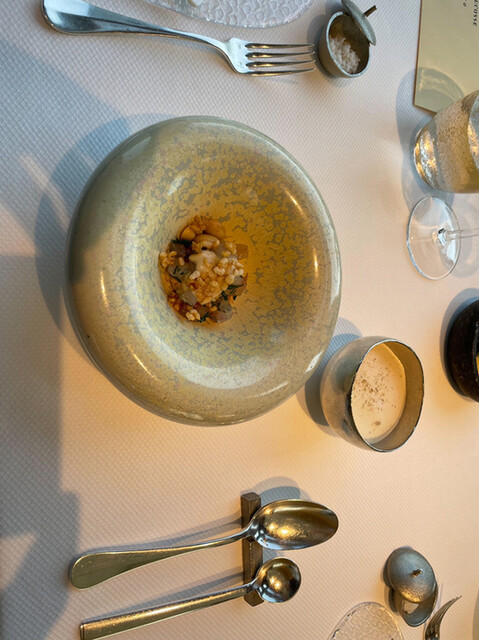 素敵な空間で頂くフレンチ、スタッフさんも多めながらキビキビ働いてらっしゃって⭐️付きレストランのサービスの神髄を垣間見ました。カトラリーやお皿にも拘りがあり見ているだけでも楽しかったです。