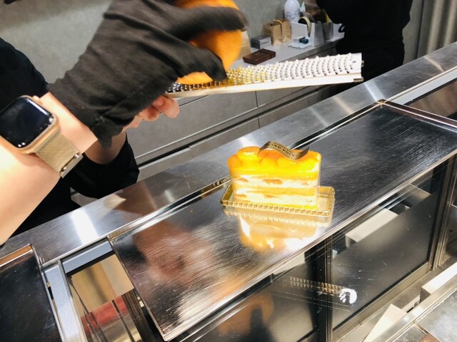 「お客様~最後の仕上げに柑橘類を掛けさせていただきます~」と目の前で柑橘の皮をすりおろしてケーキの上にかけて頂きました。斬新なプレゼンテーションで一気に気分が盛り上がります。シェフの故郷の熊本から旬の柑橘類を使って作っているそうです。柔らかいスポンジ生地、滑らかなクリーム、水分多めの柑橘ジュレが一体となりとても完成度が高いケーキで想像を超えてきました。コレ一人で3個くらい食べれそう(笑) リぴ確定です。
