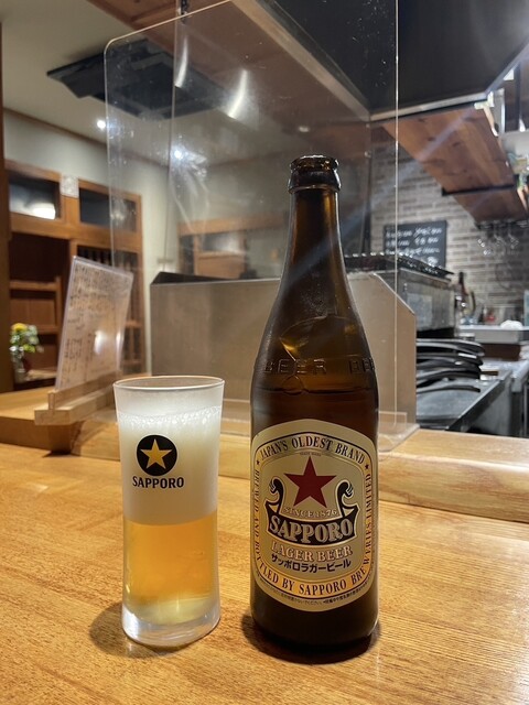 大谷口のオーケーストアの近くにある酒場です。我が家とのタイミングが悪くお断りされること4,5回でしょうか、漸く入れる日がやってやってきました。アクセスが悪い場所にあるのに通りかかるとお客さんで埋まってるのが見えるのですよね。お店に入ると大きな6人席のテーブル一卓とカウンター席9席ほどで予約が取りずらいのも納得です。