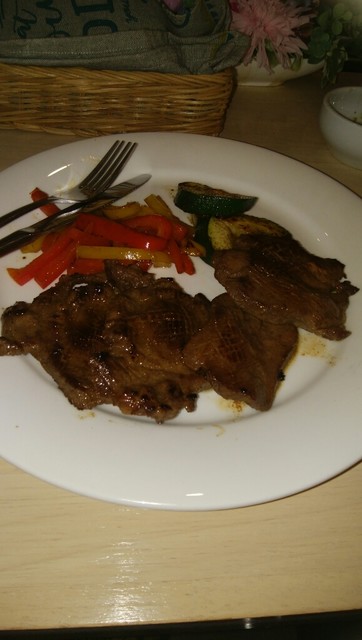 キッシュランチと、鍋ランチの野菜鍋と、厚切り牛タンステーキ、パントーネ、自家製のしそ酎ハイとしそ...