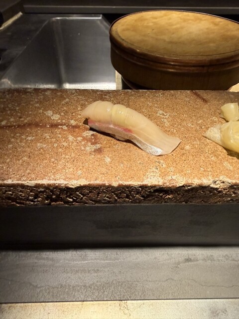 握りはアオリイカ、平目、縞鯵と端正に続き、カスゴダイ、ハガツオは特に印象的で完成度の高さを感じさせる流れ。