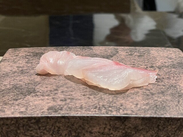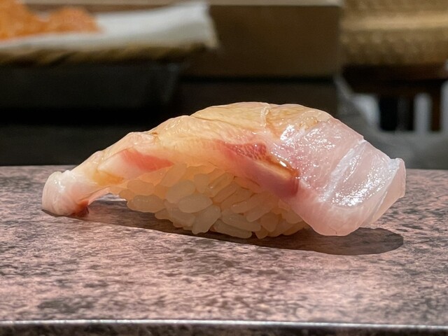 しっとりとした身の締まり具合と、ほんのりと効いた酢加減。見た目も春らしく、季節感を感じる優しい一貫。