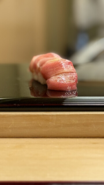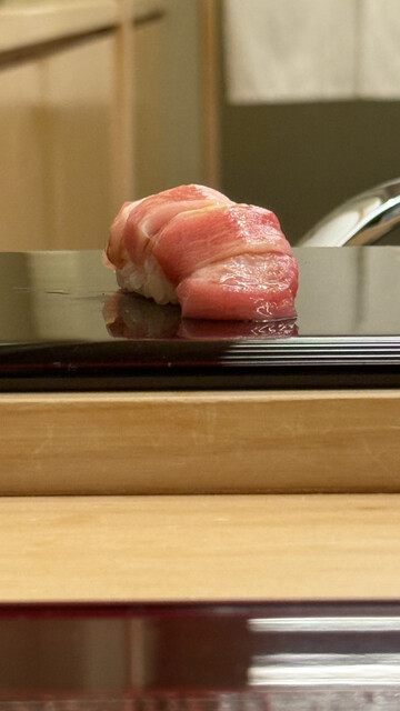 脂の厚みがありながら、温度の合わせで香りが立つ。切り付けが広く、身に均一な厚みがある。醤油は軽く当てられ、脂の甘みを自然に浮かび上がらせる。シャリの酸が全体を締め、後味に重さが残らない。脂の質が非常に良く、香りに濁りがない。冬の訪れを感じさせるような、静かな深みのある一貫。
