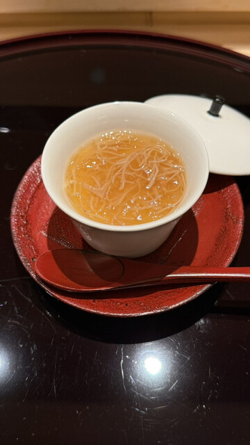 口に入れるとすぐに溶け、赤酢の酸が最後にわずかに姿を見せる。この温度設計が素晴らしく、脂が液体のように広がりながらも、後味は軽やか。香りと甘みが一瞬で消える潔さに、銀座の職人らしい精度を感じる。本鮪三段構成(赤身・中トロ・大トロ)の流れは、コースの核であり、握り全体の中でもっとも構成力を感じさせる部分だった。仕入れも技術も素晴らしく、王道の美味しさを感じた。