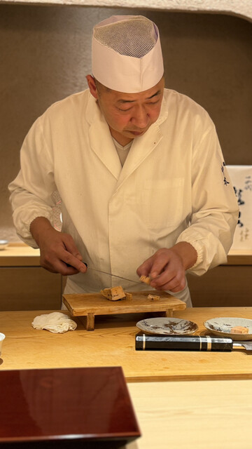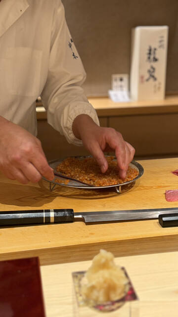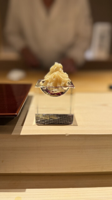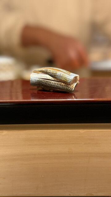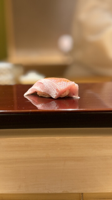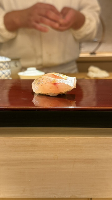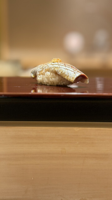 その仕事の精度が高く、脂の残り香が全く重くならない。生姜の香りがほんのりと立ち、白シャリの酸と溶け合う。脂のある魚をここまで軽やかに仕上げるのは見事。一口で江戸前の技術を感じる一貫だった。