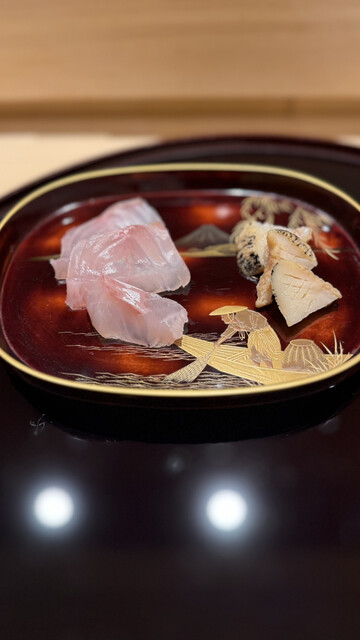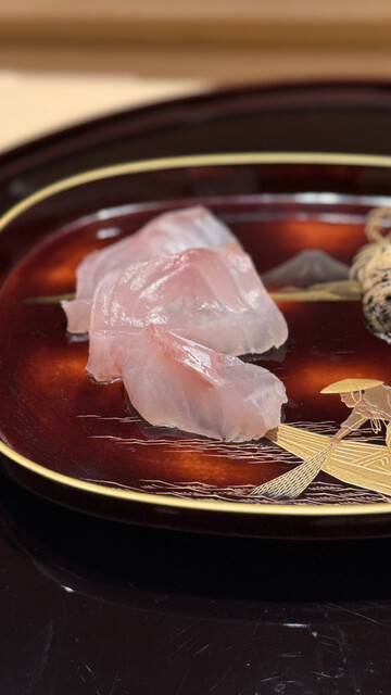 香りの設計が繊細で、春子鯛・白シャリ・柚子の香りが三位一体でまとまる。皮目の処理が美しく、軽く締めて旨みを引き出してからふり柚子を添える。バランスの良い一貫。鯛の白身を純粋に味わわせる設計で、職人の仕事の正確さが光る。