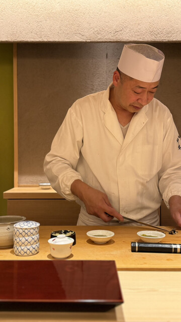 ★ 複数の仕入れ先があり、旬のピンの魚を江戸前の技法で仕立て、つまみから握りまで流れが自然。蒸し・焼き・煮・漬けの温度と香りが緻密に設計されている。