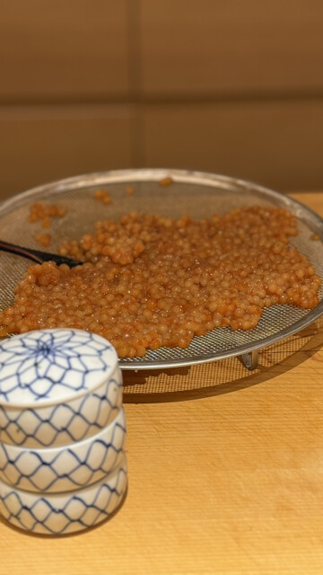一般的な軍艦と異なり、口の中で弾けるのではなくとろりと溶ける。塩分が柔らかく、旨みが穏やかに続く。白シャリと重ねることで味の重心が軽く、余韻に海の香りがふわりと残る。見た目の素朴さとは裏腹に、温度・塩味・食感の三拍子がそろった完成度の高い一貫。