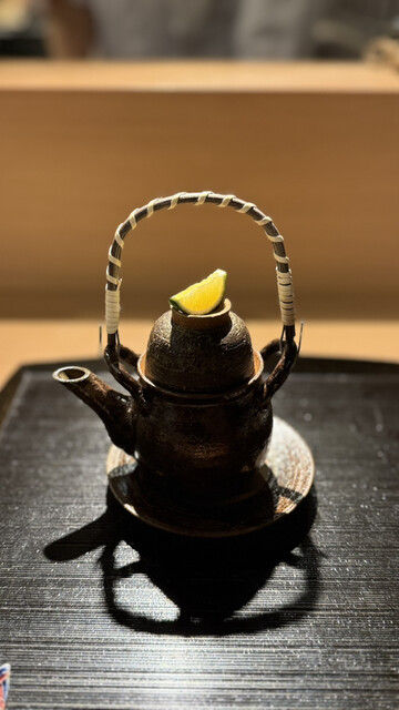 どの料理も本当にレベルが高く、甲乙つけがたいのですが、蓋を開けた瞬間の香り、出汁の力強さとキレ、具材のバランス、酢橘を垂らした時の味の変化を含めて、どれをとっても印象に残る一椀でした。