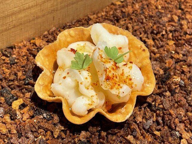 サクサクプチプチな食感も楽しく、イクラの甘味・アボカドのコク・柚子の爽快感が三位一体の味わいを構成する。