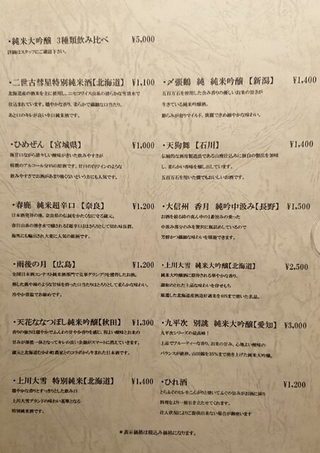 完全予約制。個室はないが接待会食向き。カウンター6席、4名テーブル席2卓。行き届いたサービスにより特別感ありアリ。旬味覚をメインとしたコース料理のみ設定。品数&ニーズにより価格幅あるも結論、良心的。北海道らしい蟹をはじめとする道産食材を生かした逸品から、全国各地の厳選食材を仕入れしていると、ただ豪語している訳でなく、美味しい本物を提供していますよ~の表現と捉えられる。た。先付けにはアプローチに変化をつけた蟹小鉢2品。丁寧はこの料理のみならず、河豚ヒレ酒の炙りからも伺える。ジェントルメン。