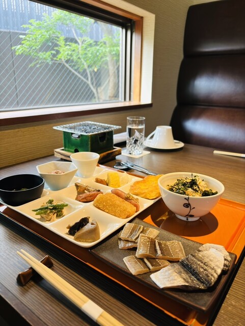 自分で焼く穴子と鯵が絶品の朝食‼︎ϵ( 'Θ' )϶