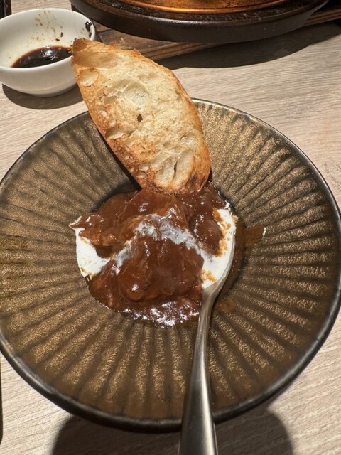 ザブトンをライスの上に乗せて卵黄と一緒に食べるのも最高!