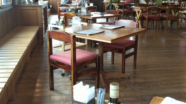 12時過ぎに行ったので、ちょうど最初のお客さんが帰り始めたころで、窓際の一番奥の席が空いていました。