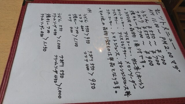 お店に電話したところ再開したことを聞き、ハンバーグセットを食べに来ました。しかし、2人での営業のため、残念ながら再開後はハンバーグはメニューから外したそうです。
