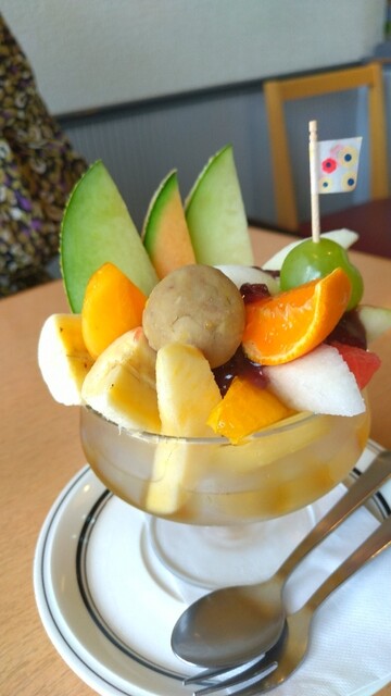 妻のタマゴサンドとフルーツあんみつも美味しかったようです。フルーツあんみつはフルーツがたくさん乗っており、少し食べてみましたが美味しかっです。