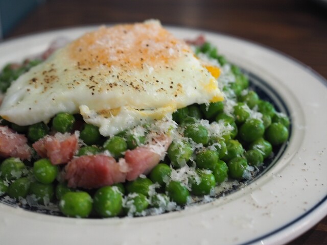 パンチェッタの塩気と、目玉焼きの黄身を崩してとろ~としたまろやかさも加わり箸が止まらない( ´艸`)