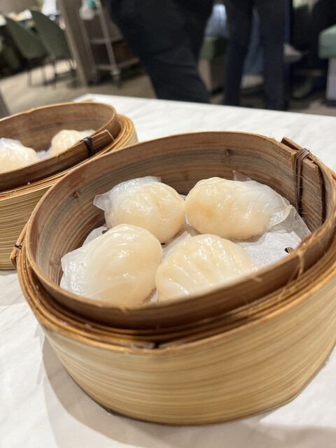 日曜日のお昼、開店前に並んで2人で訪問しました。飲茶を5品注文。水晶海老餃子は2人とも大好きなので、1人一蒸篭。あとは、腸粉、海老湯葉巻きオイスターソース、レタス蒸し、チャーシュー餡のメロンパン的なもの?です。どれも美味しかったですが、私は海老湯葉巻きオイスターソースがビールに合って最高でしま。青島ビールを一人2杯飲んだので、お昼にしてはお高めなお会計になりましたが、大満足です。