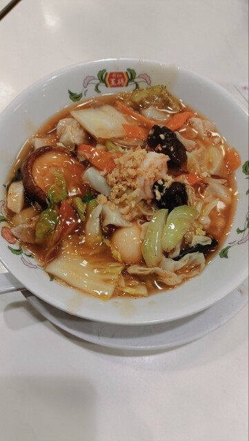 王将ラーメンと野菜たっぷり担々麺、12月1月限定の五目あんかけラーメンを家族で食べました。五目あんかけラーメンは生姜のしっかりきいていて生姜過ぎにはたまらないおいしさでした。夕方16:30頃行きましたが、混んでいました。