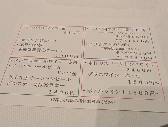 記念日で利用しました。千葉にある素敵なレストラン。コースのみで、サービスがとても素晴らしく楽しいひと時を過ごせます。