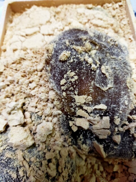 カレースプーンで1個頬張り、口の中できな粉が無くなったらきな粉だけまたすくって食べます。それでも余りますwww