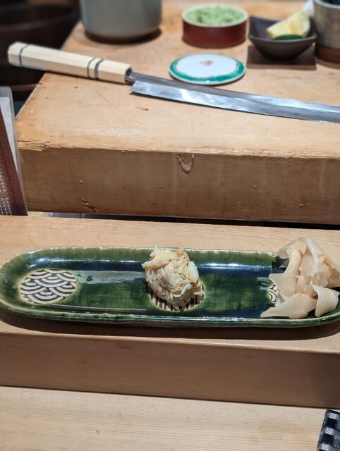 本日はカウンター席でライブ感満載の活け蟹とお鮨のコースを。